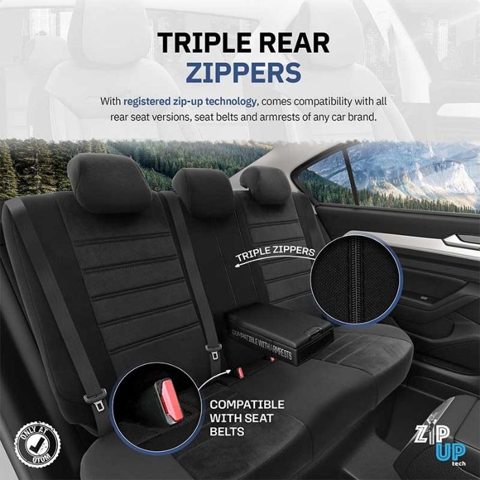 Технология ZipUp-Tech: Благодарение на технологията ZipUp-Tech тапицериите имат ципове и могат да се използват на задни седалки, които се свалят (разделят) във формат 40/60, 50/50, 60/40