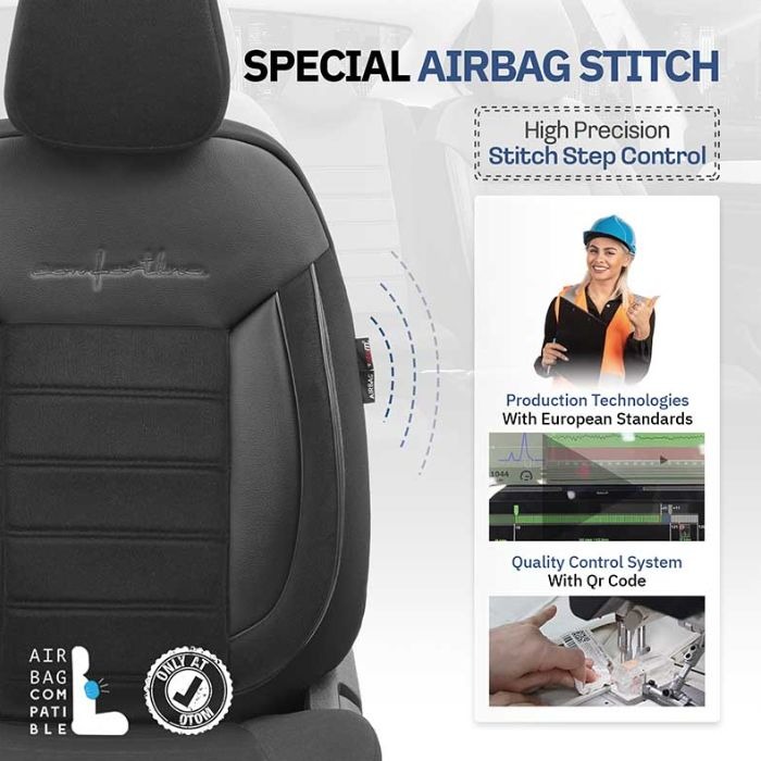 Тапицерия за кола Otom Comfortline CMF209 (Черно) разполага с TUV сертификат и са съвместими със странични AirBag въглавници.